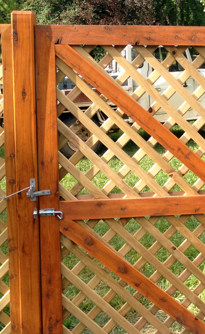 Cypress gates are also available as pedestrian size only up to 1200mm wide and we utilise a Cypress frame with a lattice insert which is braced for support.