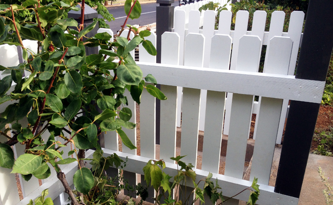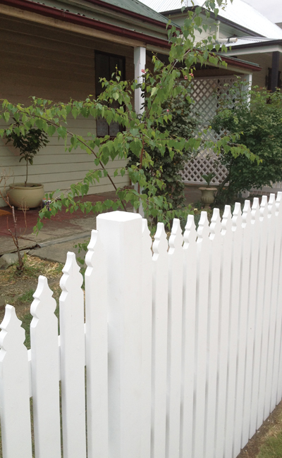 Picket fence heights range from 900mm (3 foot) up to 1500mm (5 foot). Both rails and pickets are Cypress with pickets having different shaped tops available. One coat of Dulux primer is applied to all timber. Cypress picket fences must be painted to protect the life and look of the timber so Timberwood also offers a full two top coat Dulux Weather Shield painted finish to complete the stylish look of a timber picket fence.