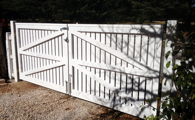 Our Timberwood picket gates come in two options; a pedestrian size single up to 1200mm wide opening (Cypress timber or RHS powder coated steel frame) or a drive through size double which can be up to 4200mm opening size and is only offered with an RHS powder coated steel frame. Height is usually 900mm (3 foot) or 1200mm (4 foot).